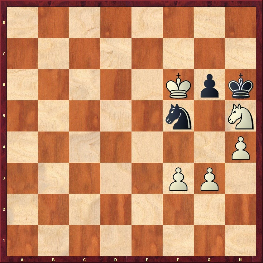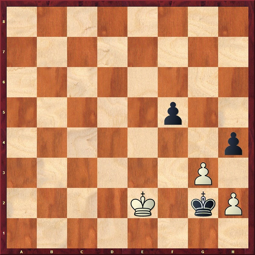 Now h4 is pointless as after gh4, there is no f4. Hence Black must play 3…Kxh2 and after 4.Kf2 we reach a theoretical draw.