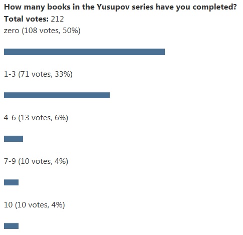 Continuing the current Yusupov theme of the blog, in a comment Steve suggested this week’s question: “How many books in the Yusupov series have you completed?”