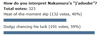 It’s all ancient history now, but the question was: How do you interpret Nakamura’s “j’adoube”?