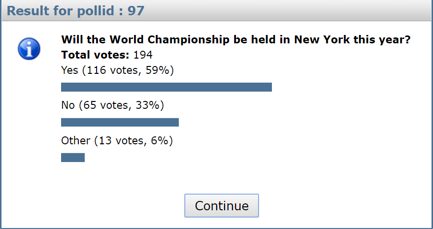 And just in case anyone wrongly thinks asking this poll question showed hostile intent from me: I hope AGON manages to organize an exciting World Championship, in New York, on the announced dates.